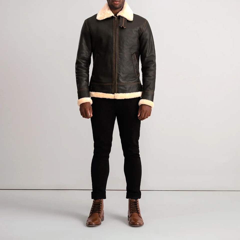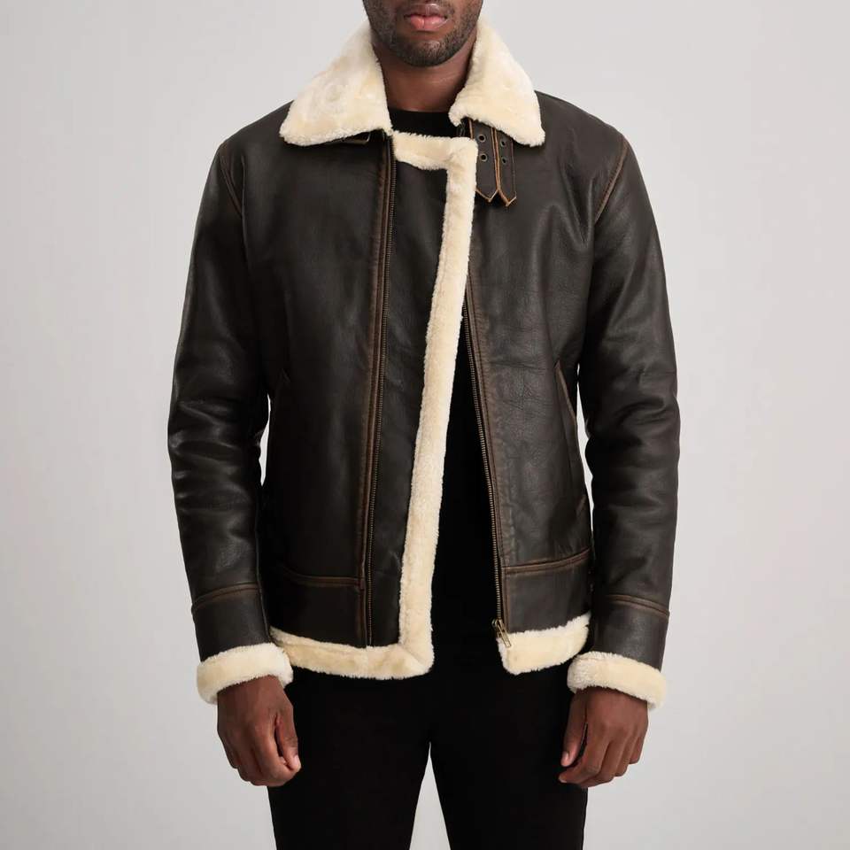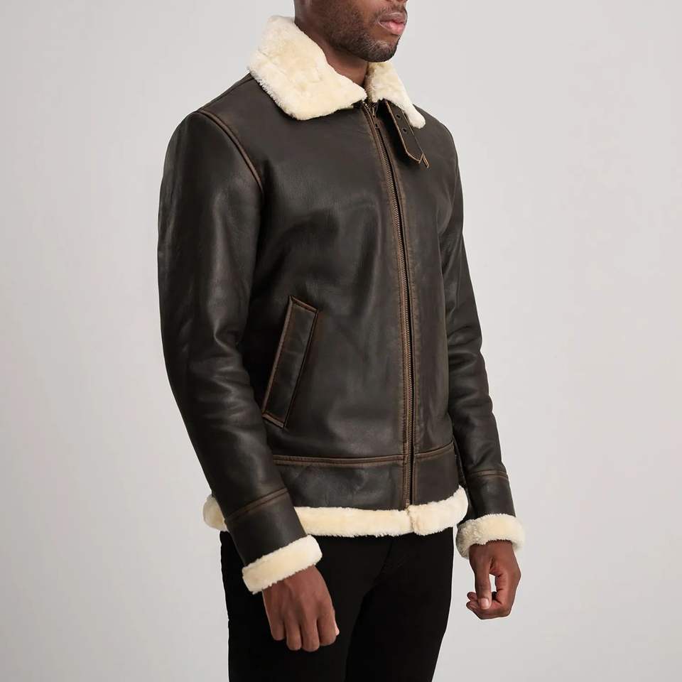 Blouson aviateur en cuir marron B-3 personnalisé, col montant, style décontracté hiver, coupe-vent, respirant, fermeture éclair, service OEM