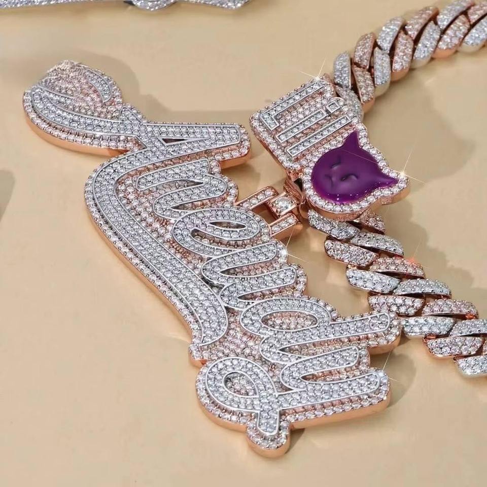 KRISHNAM JEWELS Pendentif personnalisé lettre BAL, Moissanite sertie, Argent sterling plaqué or, Collier unisexe Hip Hop pour homme