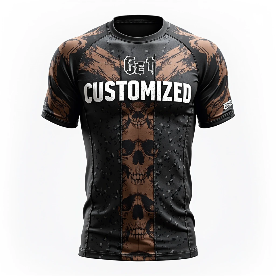 Personnalisé BJJ MMA Anti-UV Sublimé Rash Guard Respirant 100% Polyester Gym Workout Training Gear Combat Sports Athlétique