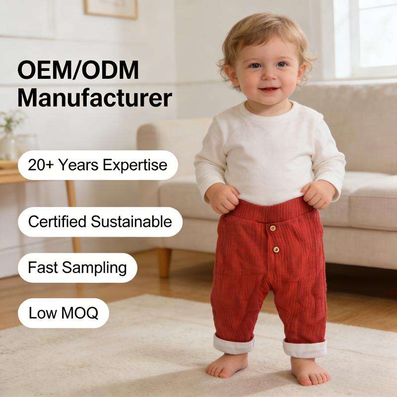 Pantalon en mousseline de coton personnalisé pour bébé, pantalon double gaze pour bébé, pantalon sarouel pour tout-petit, pantalon pour nourrisson, pantalon pour bébé à marque privée