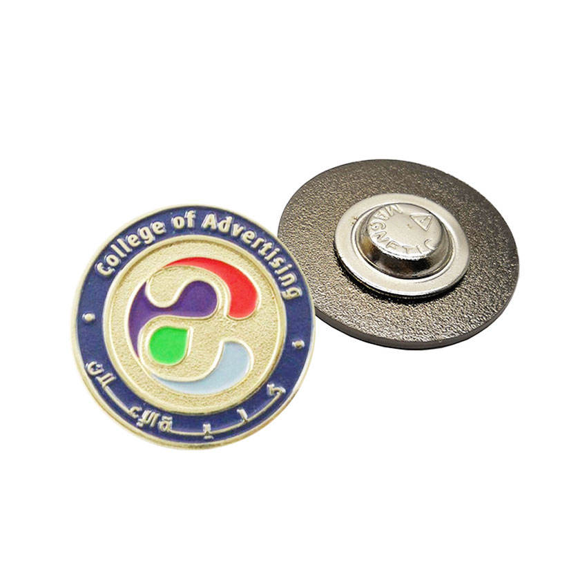 Épinglette en émail magnétique promotionnelle en émail doux à aimant arrière personnalisé