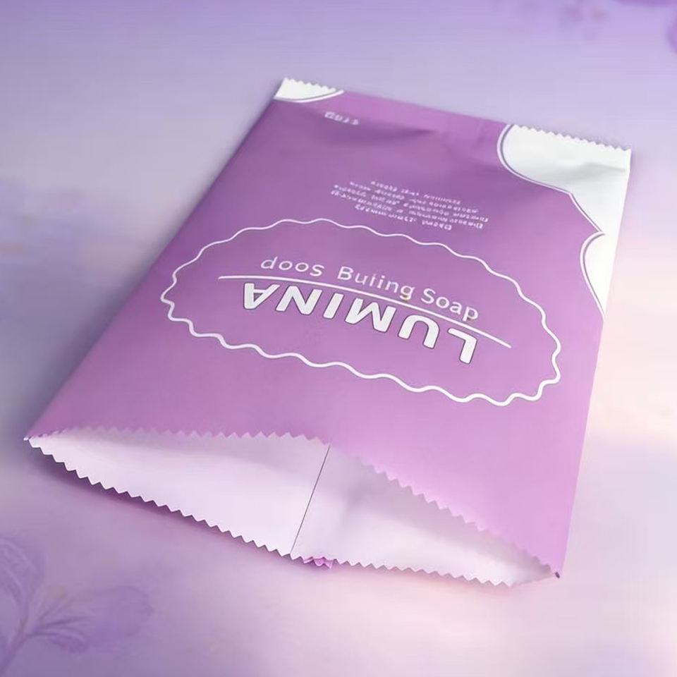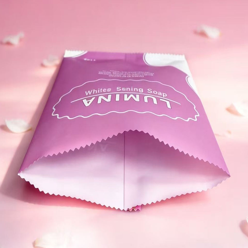 Sachet cosmétique personnalisé à scellage arrière, échantillon de savon 110g, pochette vide avec impression de logo