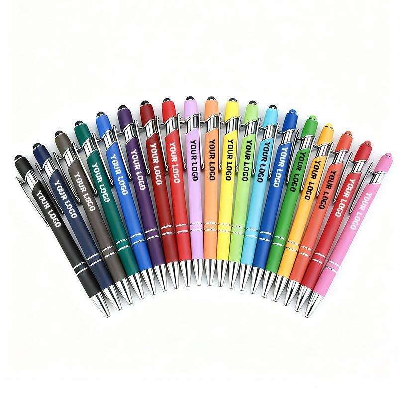 Stylo à bille personnalisé à couverture souple, stylo à bille promotionnel en métal caoutchouté, stylet tactile en aluminium, stylos avec logo personnalisé