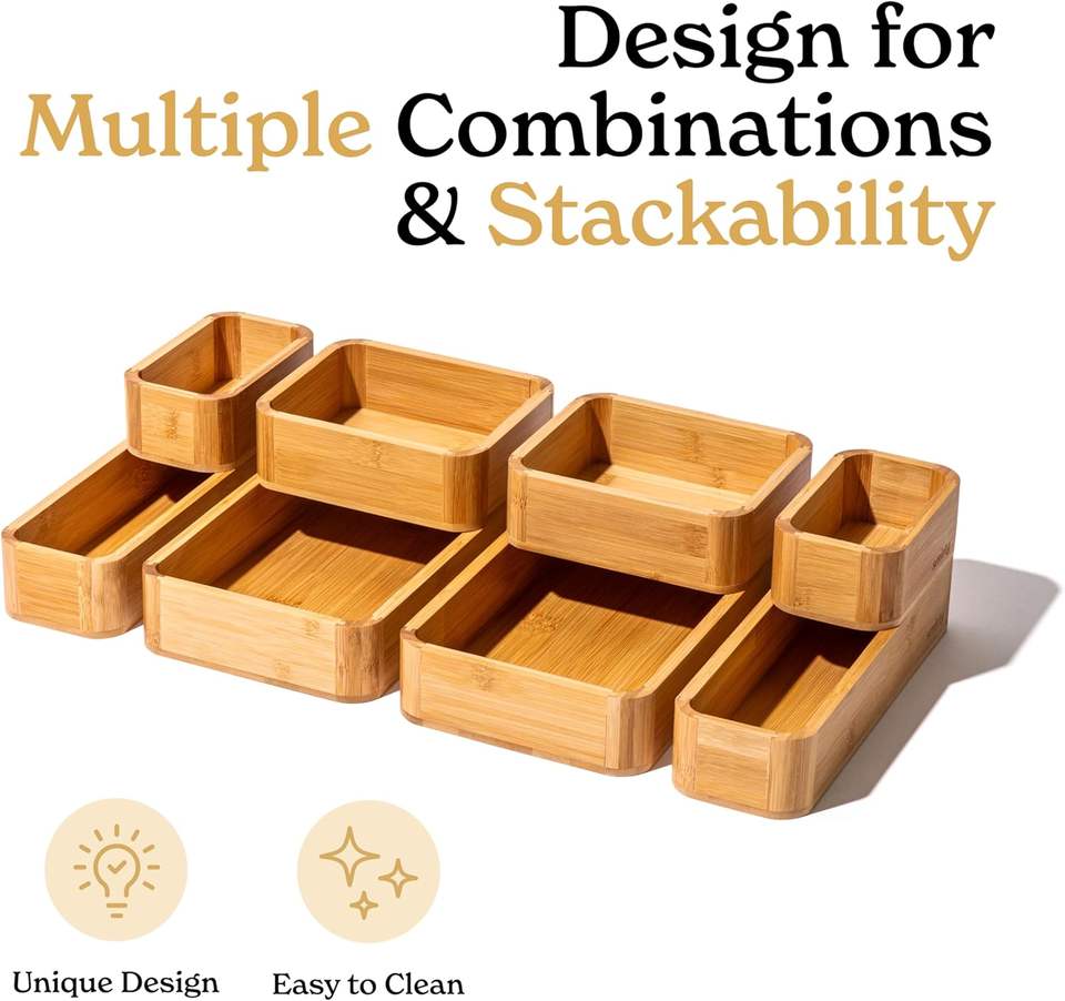 Ensemble d'organisateurs de tiroirs de cuisine en bambou personnalisés, boîte de rangement multi-usages pour salle de bain, bijoux, couverts, couteaux, épices, serviettes, plateau pour tiroir à déblais