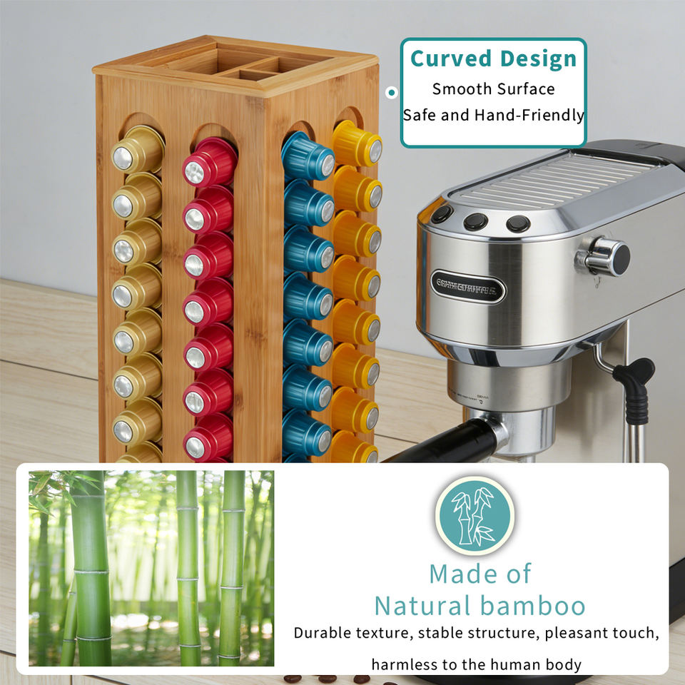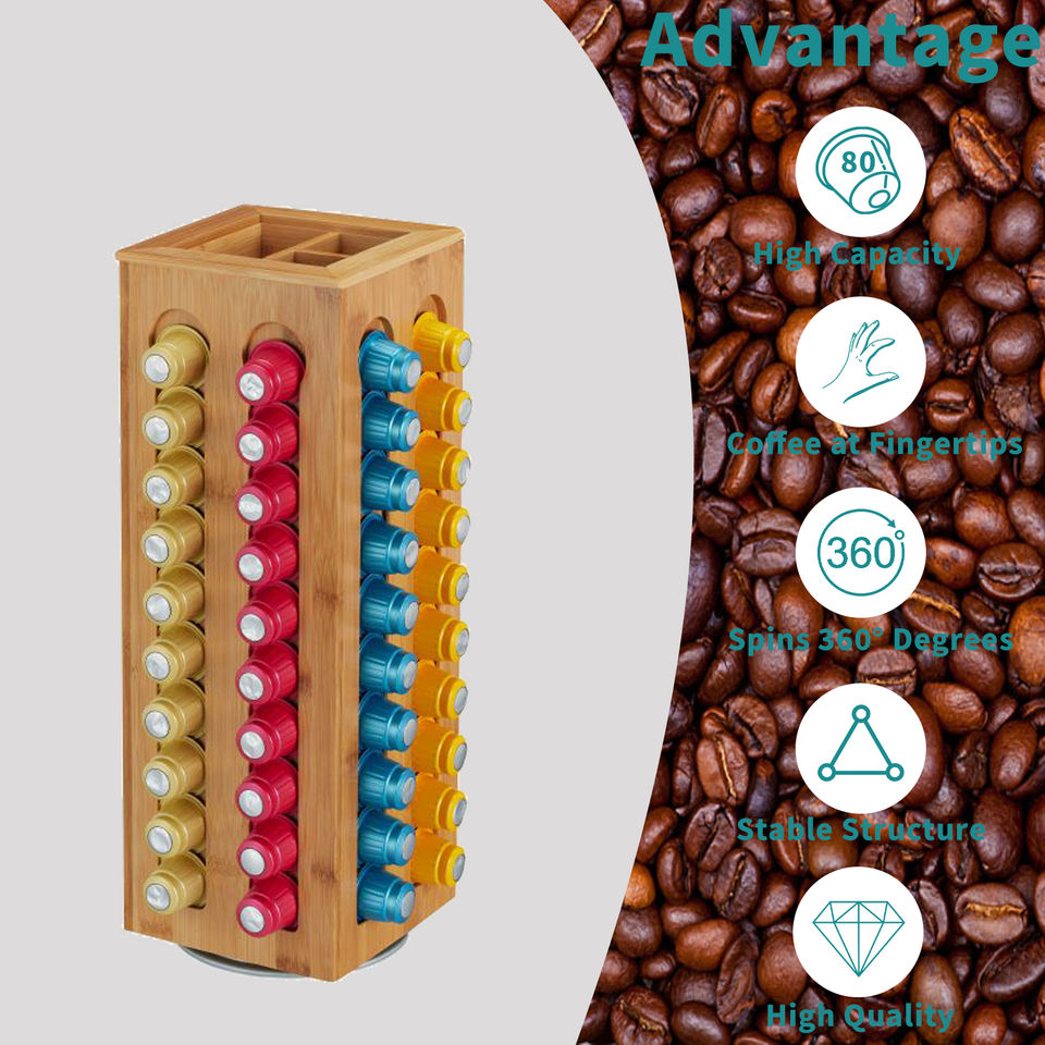 Support de capsules de café rotatif en bambou personnalisé, compatible avec 80 capsules Nespresso