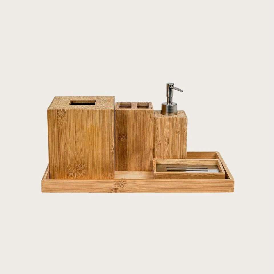 Product name:Bamboo Wooden 5 Piece Bathroom Accessory