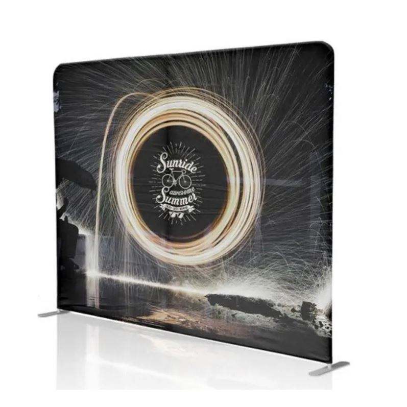 Toile de fond personnalisée légère en microfibre, impression sérigraphique durable, logo personnalisé, montage sans outil, pour le commerce