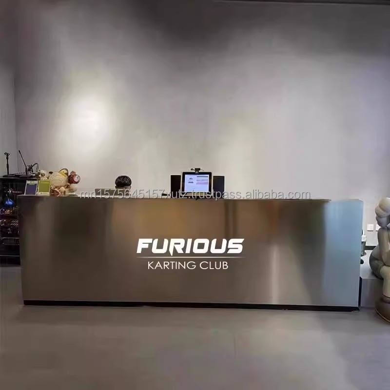 Comptoir de bar personnalisé en acier inoxydable 304, comptoir de bar bas avec rangement et étagère de présentation pour magasin de détail, restaurant, restauration