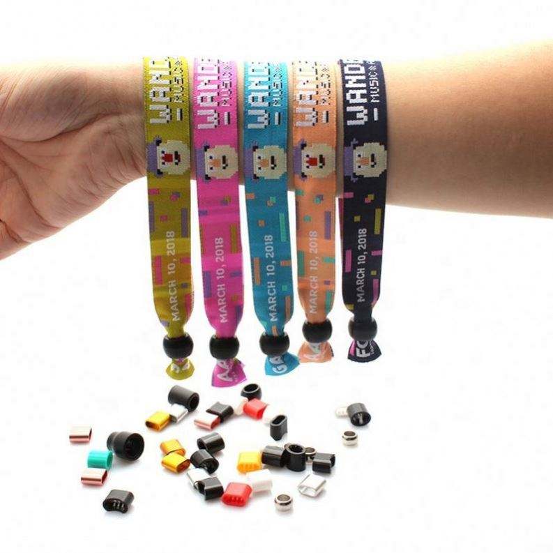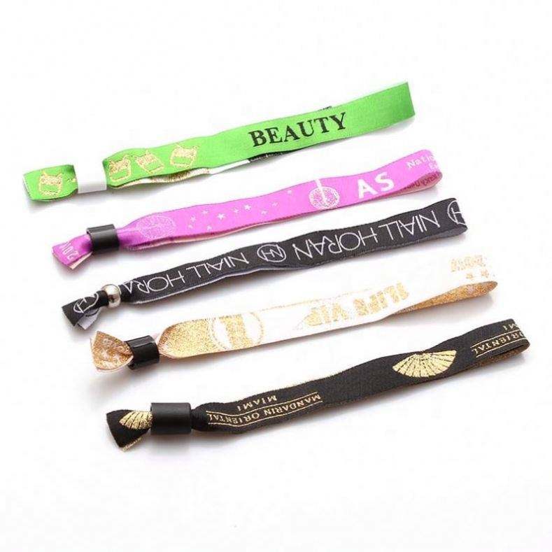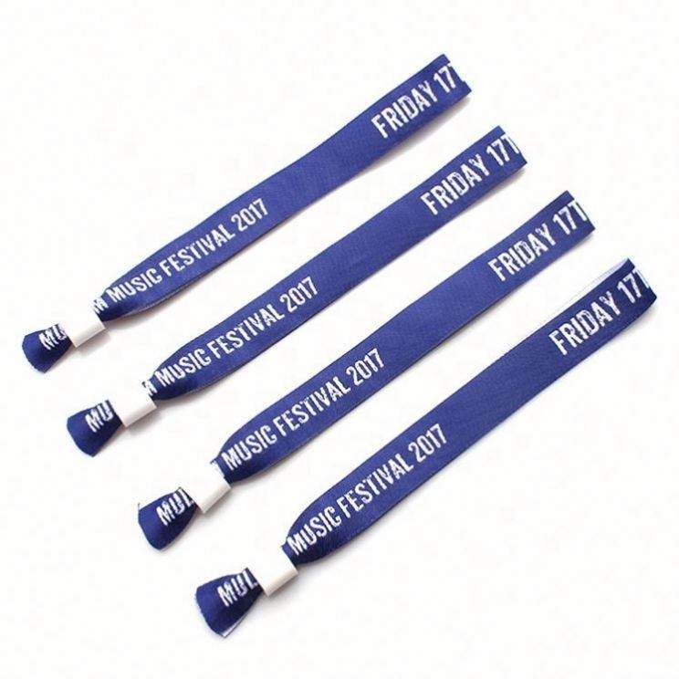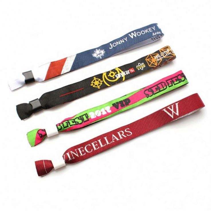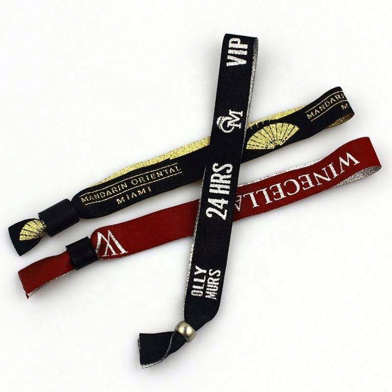 Bracelet en tissu personnalisé avec fermeture à barillet, logo festival, pour billet d'entrée, événement, concert, en satin