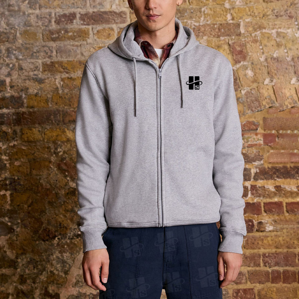 Sweat à capuche zippé brodé pour homme, style basique personnalisé, en mélange coton-polyester, anti-plis, polaire, coupe ample, pour la gym et l'entraînement