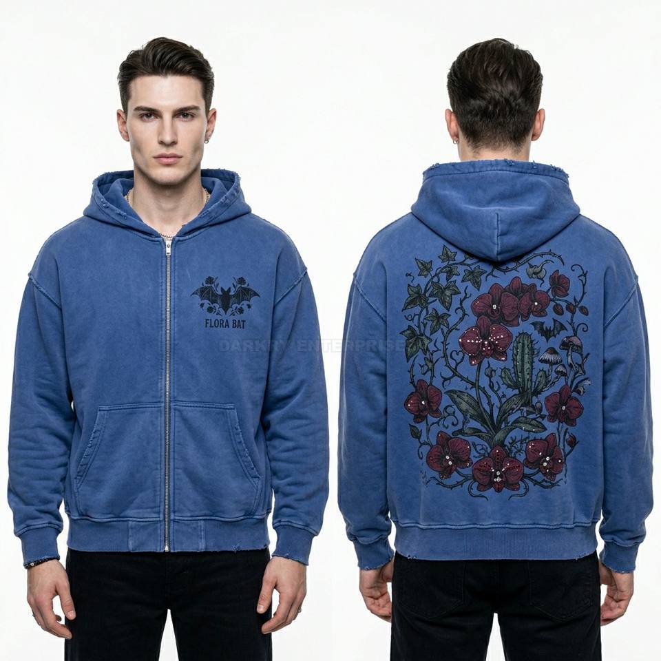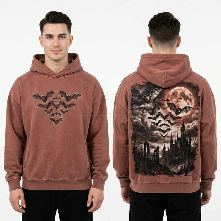 Sweat à capuche personnalisé pour homme, motif chauve-souris en strass, style vintage délavé, coupe oversize, imprimé graphique, streetwear, vente en gros
