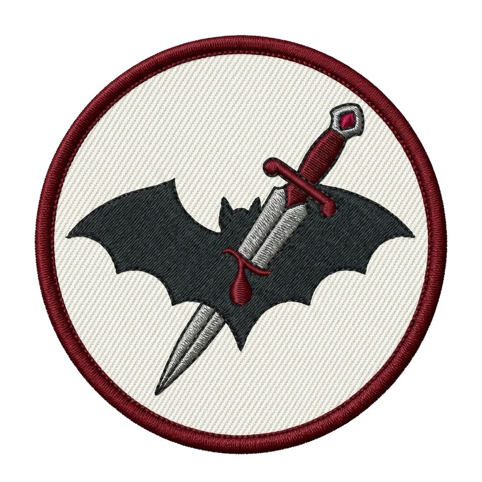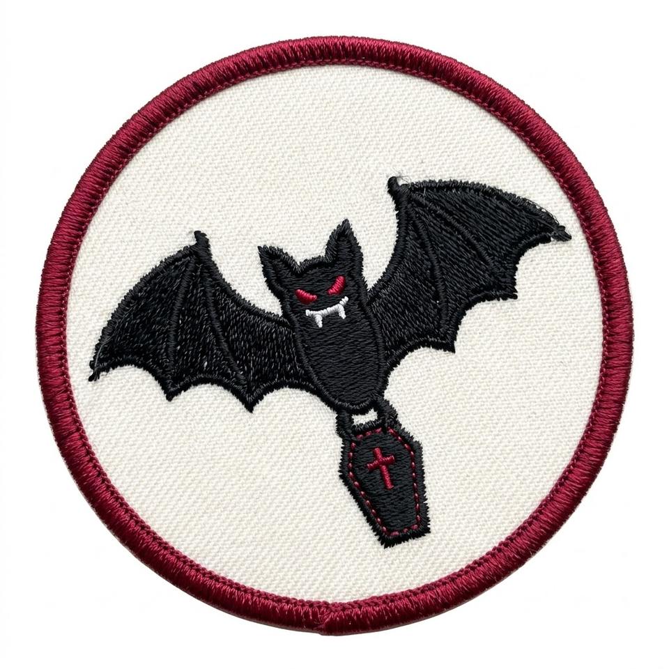 Patch thermocollant personnalisé, rond, brodé, motif chauve-souris et poignard, badge gothique, applique épée de vampire pour vestes et jeans, fournisseur en gros