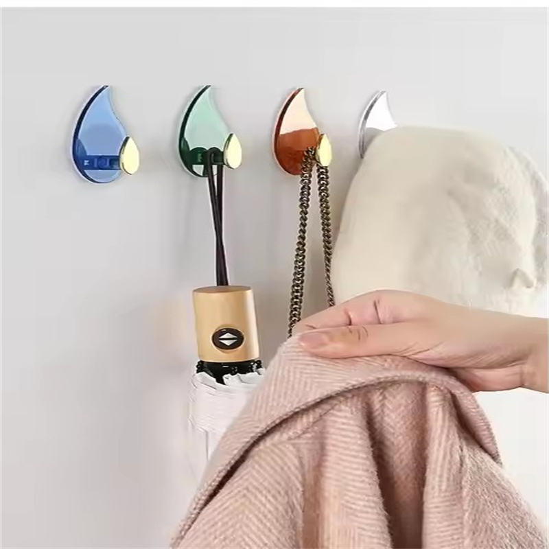 Crochets muraux de salle de bain auto-adhésifs en matériau PET personnalisés Conception de porte-manteau goutte d'eau Forte capacité de charge Classique pour