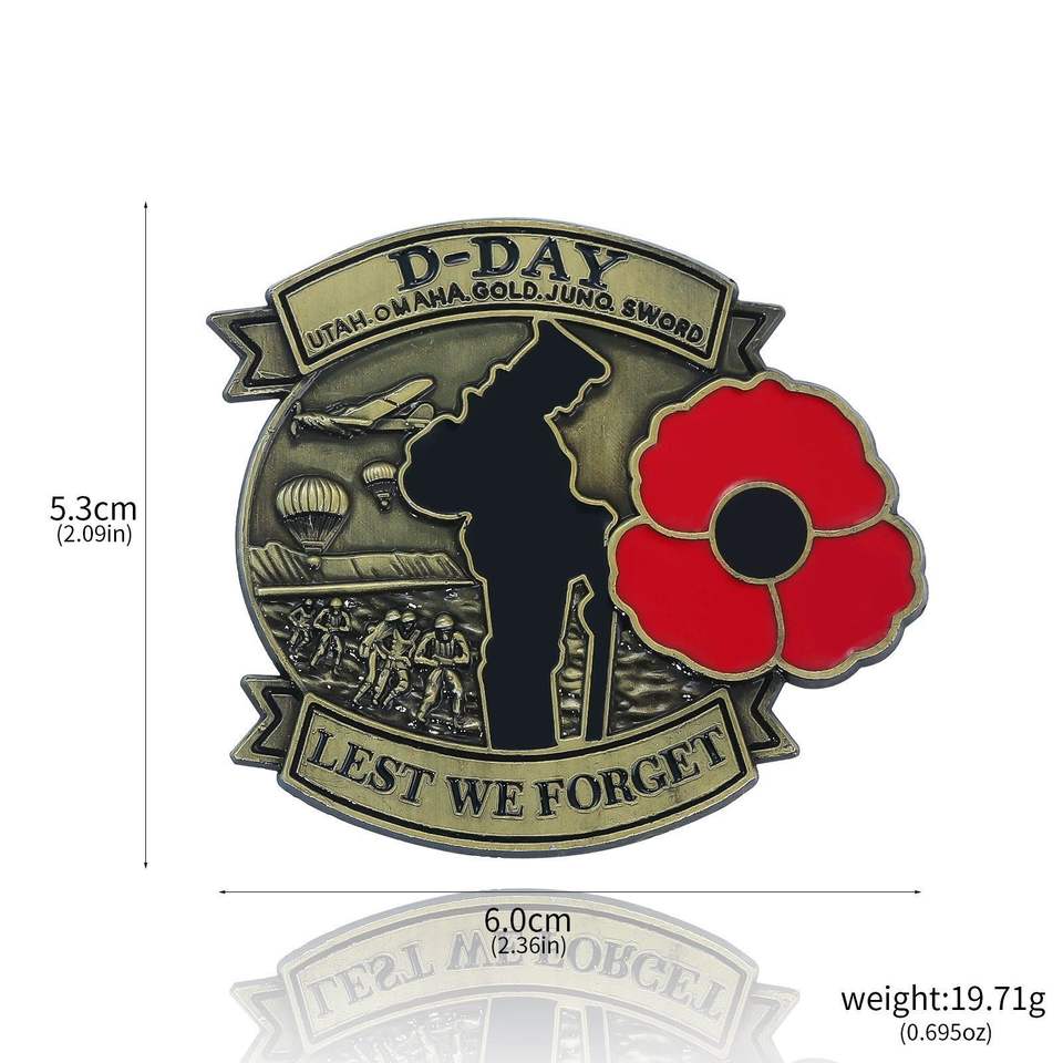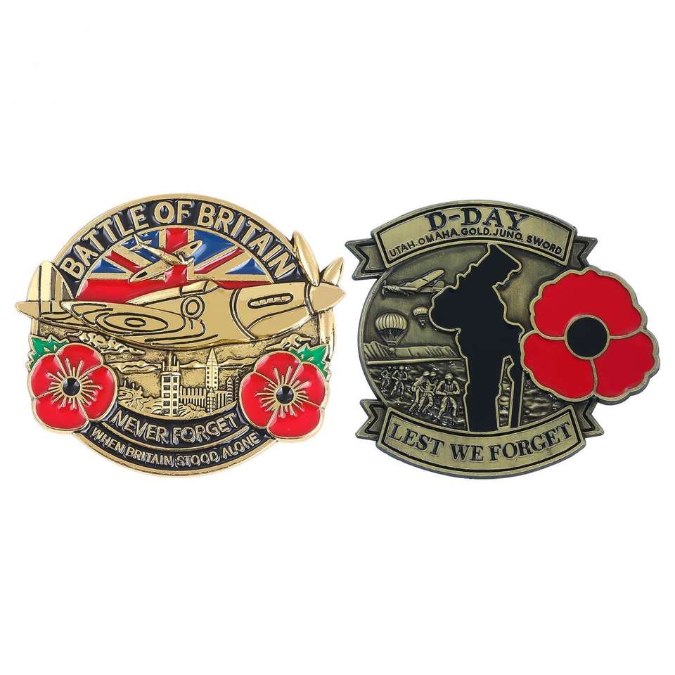 Épinglette en alliage de zinc plaqué or 3D avec motif de jet de combat et de fleur de pavot, souvenir de la guerre de l'Indépendance britannique, lettres d'amour personnalisées