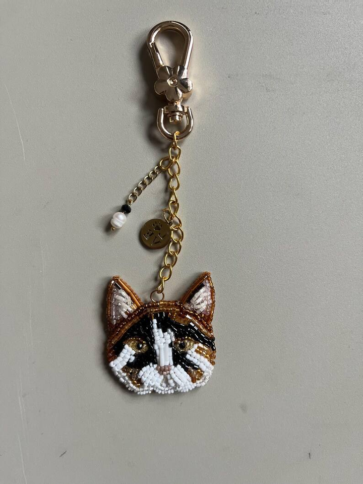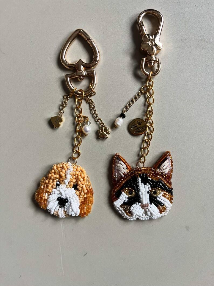 Porte-clés personnalisé avec portrait d'animal en perles, pendentifs et breloques commémoratifs pour animaux de compagnie, porte-clés photo brodé pour les amoureux des animaux