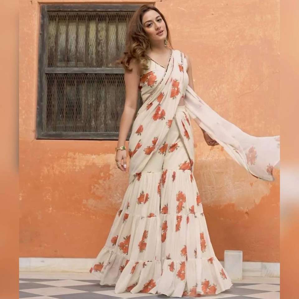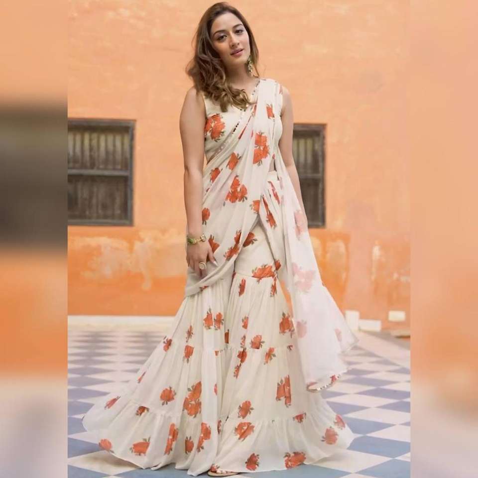 Custom Beautiful Embroidered White Color Attractive Party Wear Organza Sharara Saree Regular-fit Traditional Ethnic Saree Dress