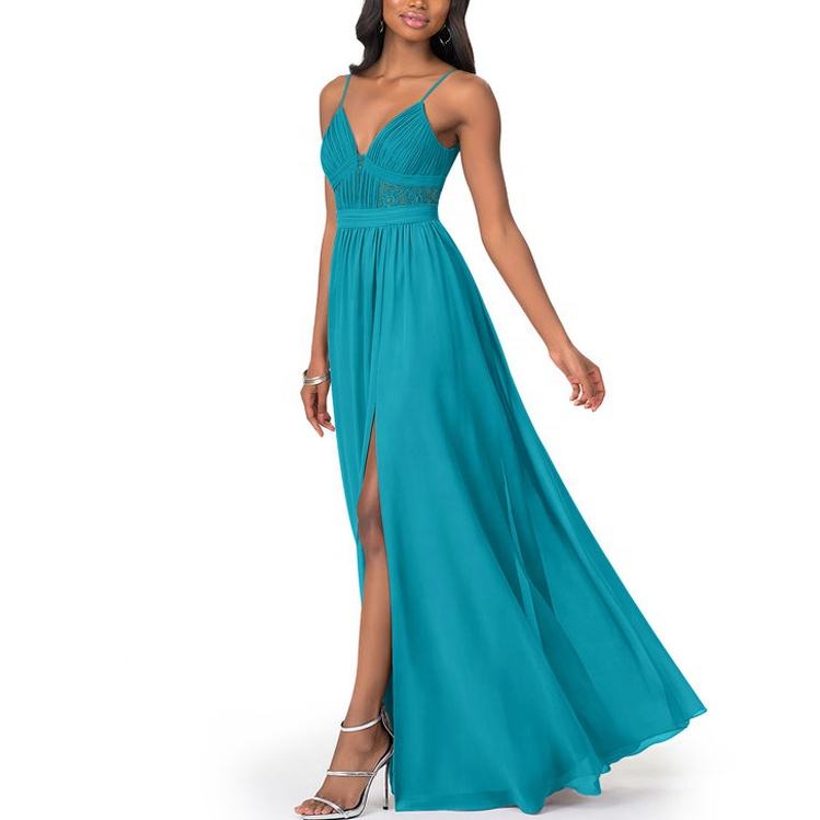 Robes de mariée longue en mousseline de soie turquoise demoiselle d'honneur