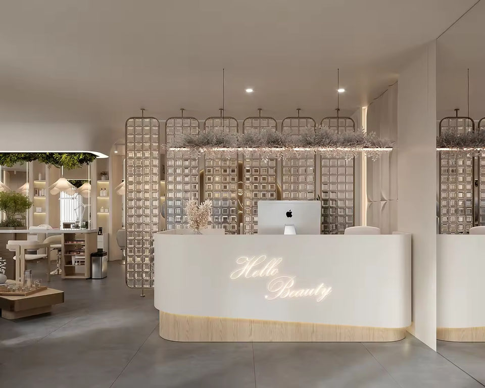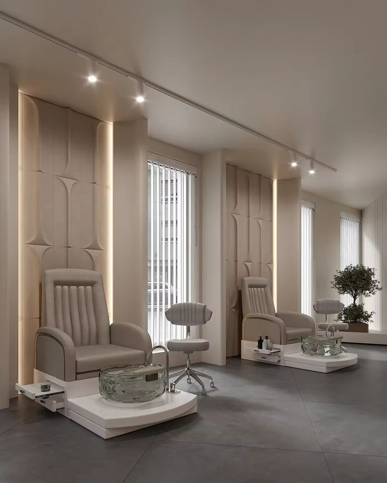 Conception d'intérieur personnalisée pour salon de beauté, rénovation complète d'un studio de beauté, décoration minimaliste pour salon de coiffure et de manucure