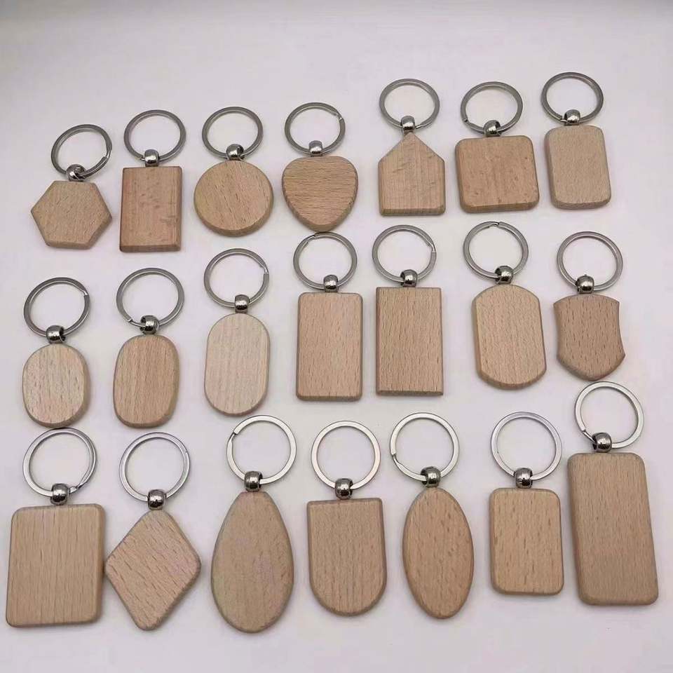 Porte-clés personnalisé en bois de hêtre avec gravure laser - Porte-clés en bois personnalisé pour cadeaux d'affaires et cadeaux promotionnels
