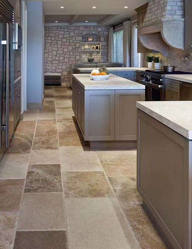 Custom Beige Limestone Flooring Tiles French Patterned Antique for Interior/Exterior Use Villa Bathroom Living Room Kitchen