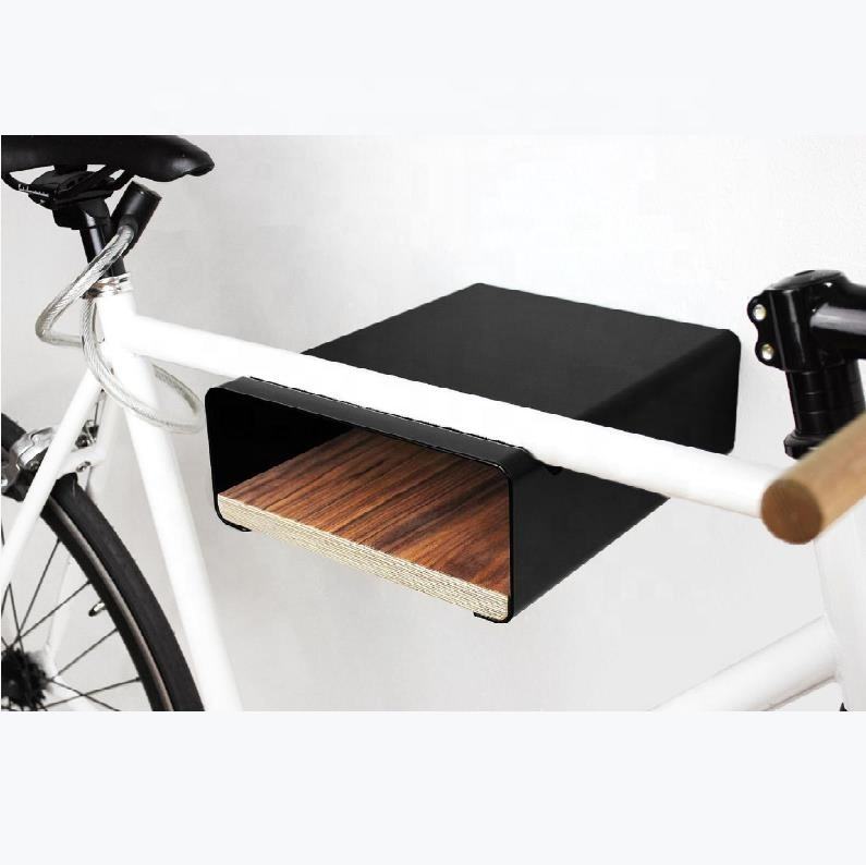 Porte-vélo personnalisé en métal noir et bois, support mural de rangement multifonctionnel pour casque avec serrure à clé, pour articles divers