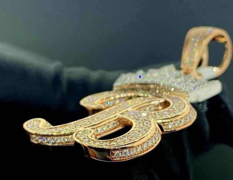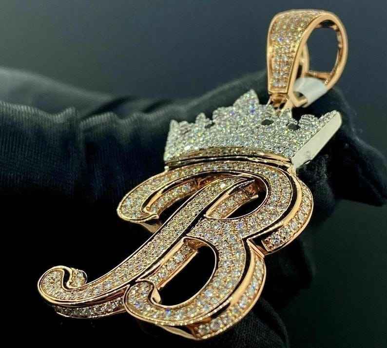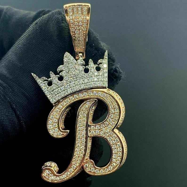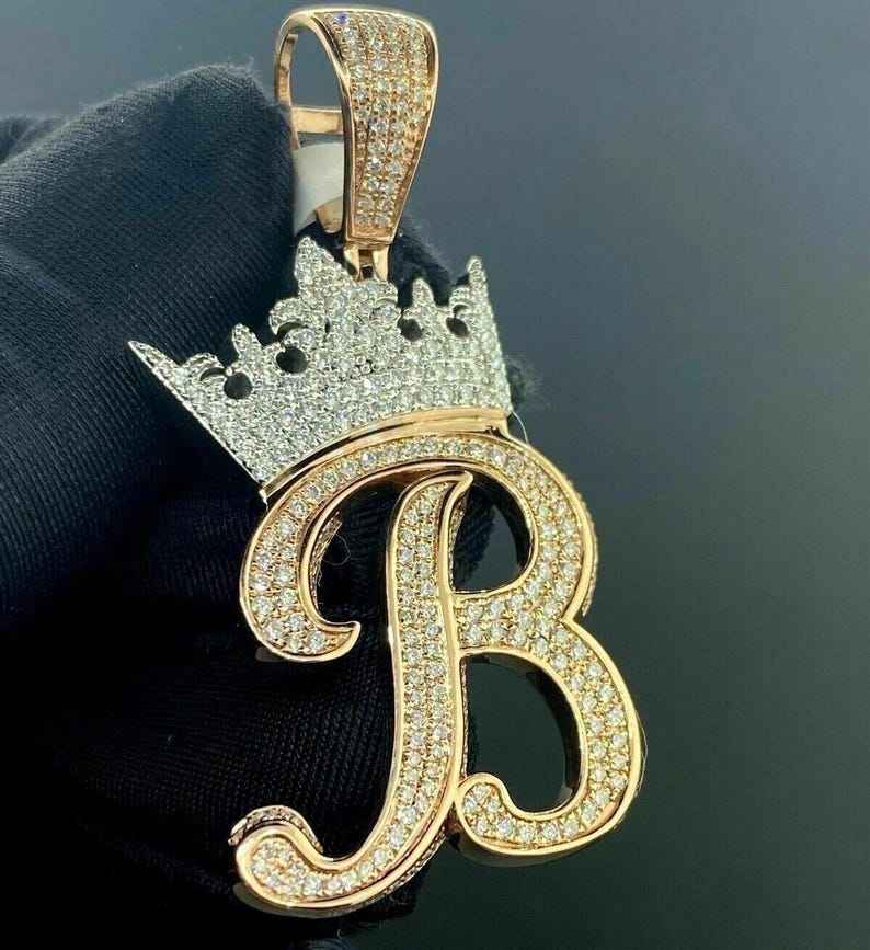 Pendentif personnalisé en forme de grande lettre B et couronne, serti de moissanite, plaqué or, pour bijoux fins en argent sterling 925, pendentifs et breloques