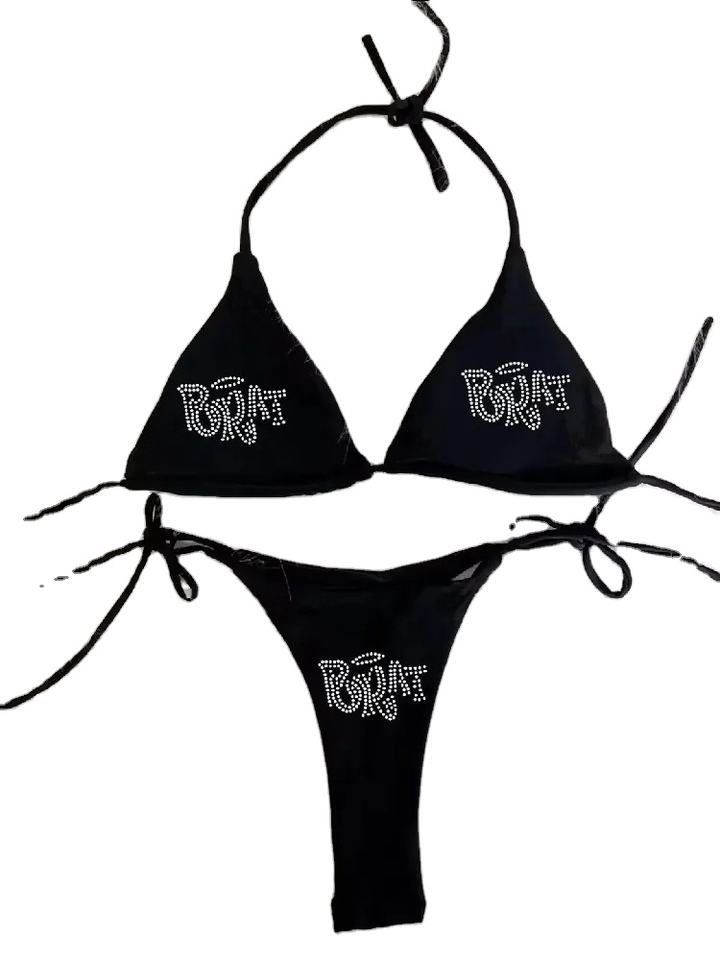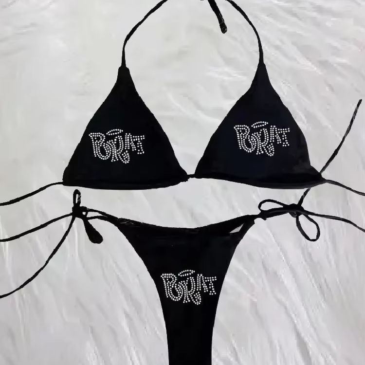 Bikini personnalisé avec étiquette logo en métal Maillot de bain bikini personnalisé taille haute Vêtements de plage Ensemble de bikini string deux pièces sexy 2023
