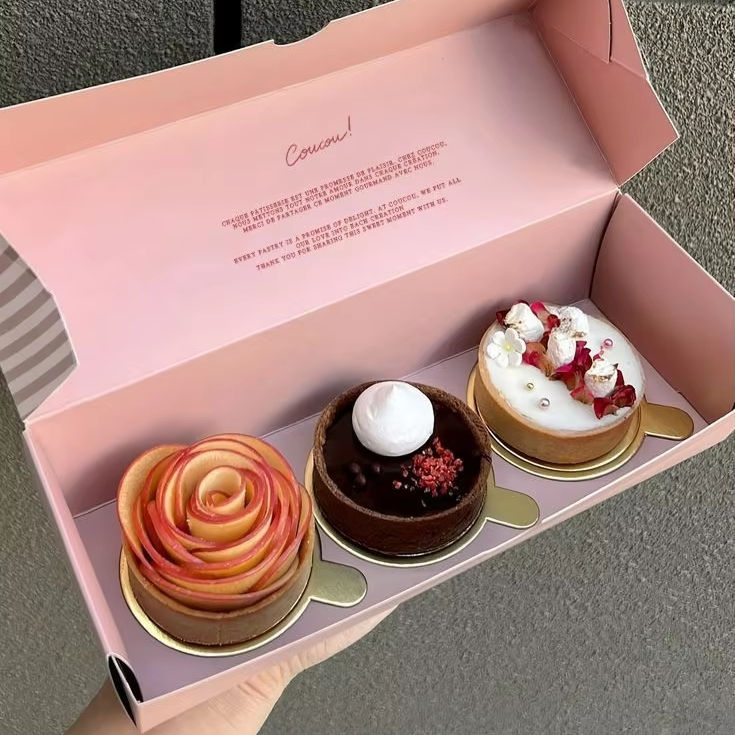 Emballage en carton de papier pliable biodégradable personnalisé, vente en gros de boîte d'emballage de papier cadeau de gâteau biscuit biscuit beignet avec bûche