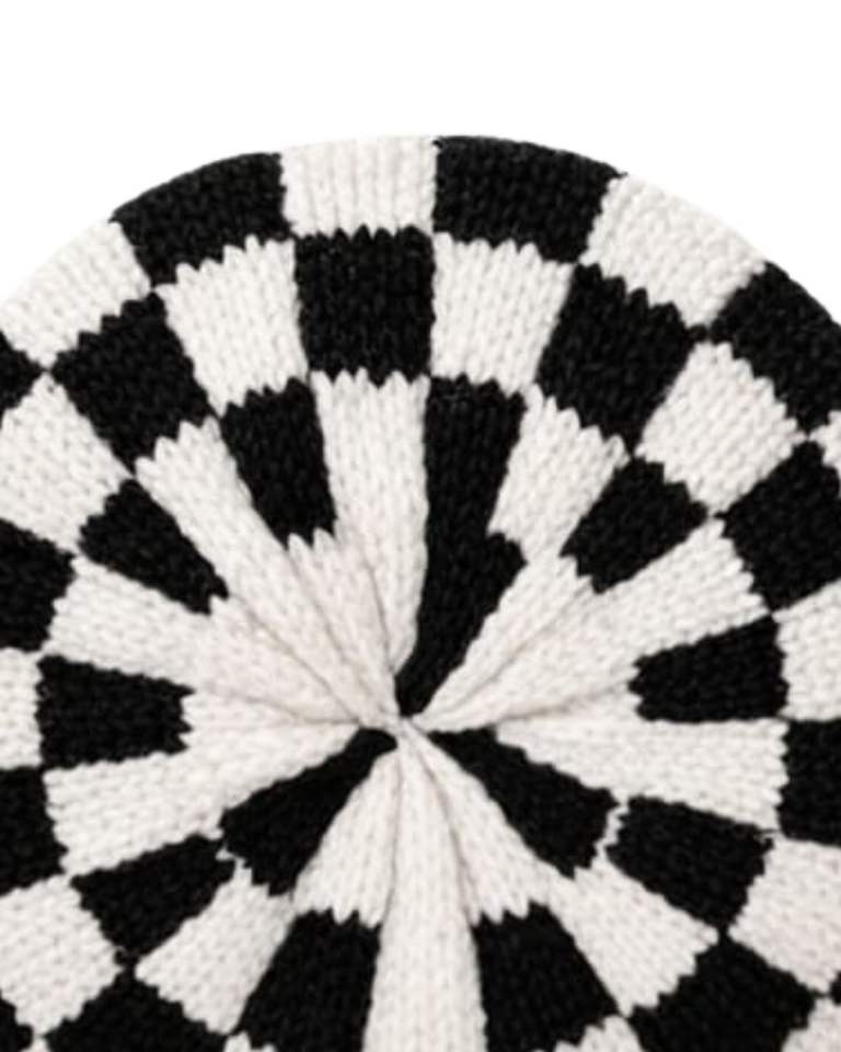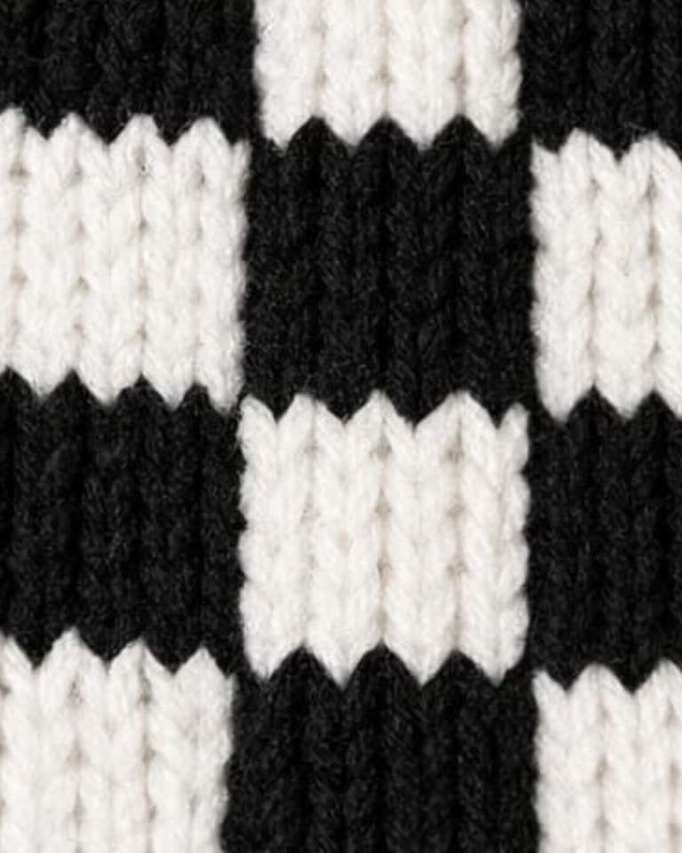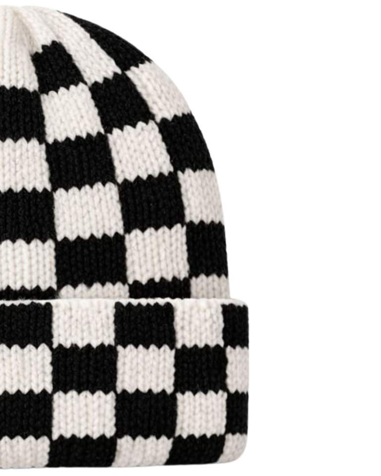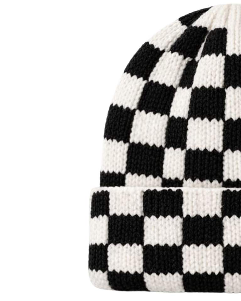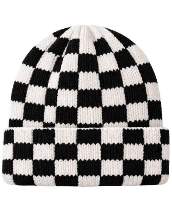 Bonnet tricoté personnalisé noir et blanc à carreaux, chaud pour l'hiver, avec revers, en acrylique doux, unisexe, style streetwear