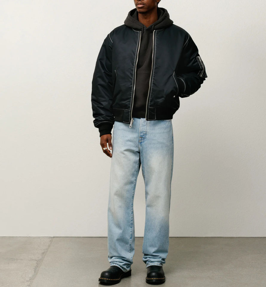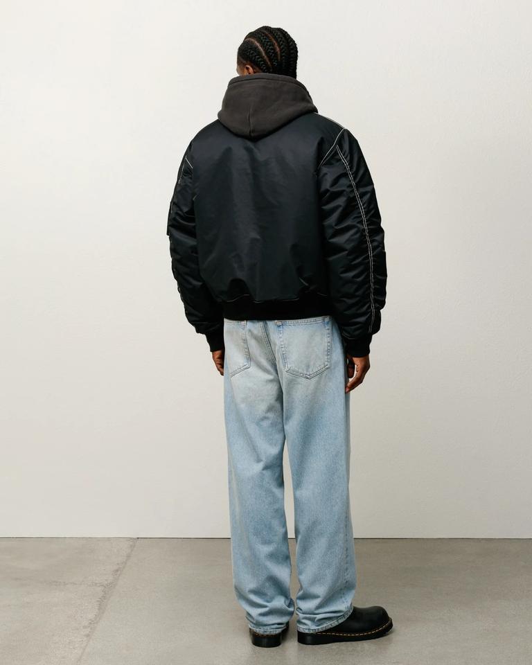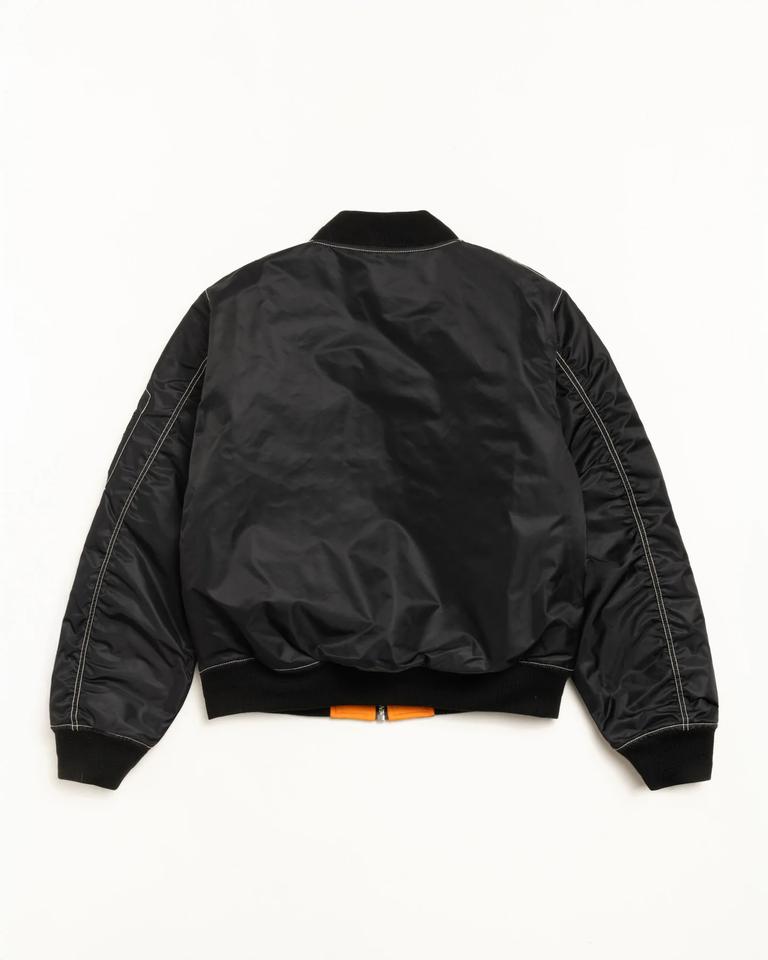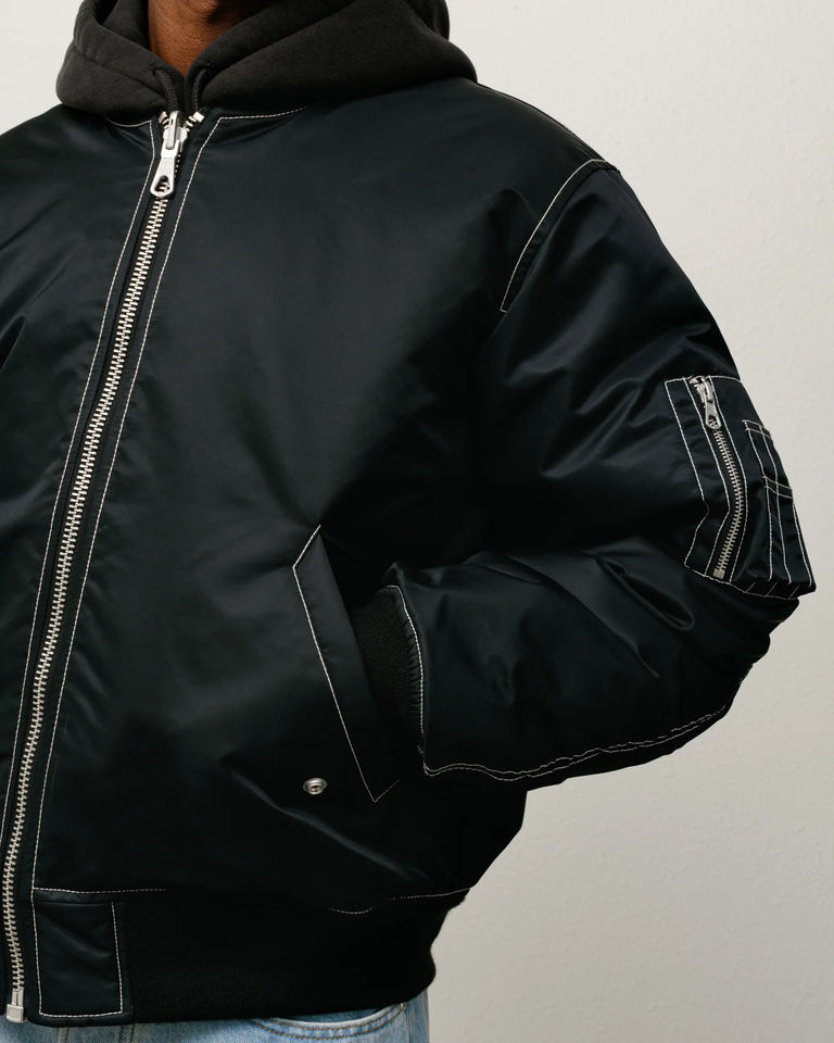 Blouson aviateur noir personnalisé pour homme | Blouson aviateur en nylon streetwear avec poche zippée, réversible et surpiqûres contrastées