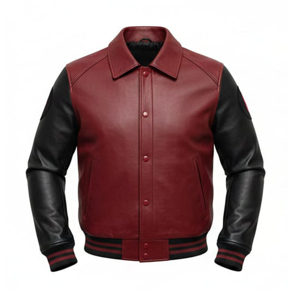 Blouson universitaire noir personnalisé en cuir pleine fleur, respirant, coupe-vent, avec doublure en toile écologique, style streetwear, vente en gros