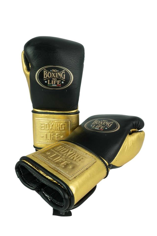 Gants de boxe personnalisés noirs et dorés « No Boxing No Life », 100 % cuir de vachette véritable de qualité supérieure, pour le sparring.