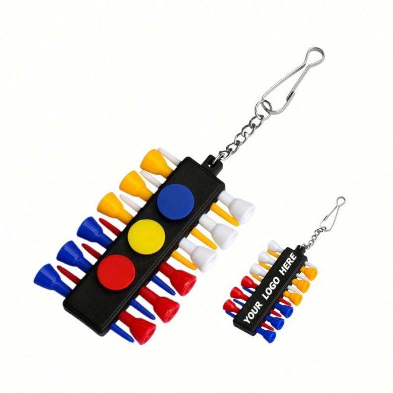 Support de tees de golf noir personnalisé avec 12 emplacements pour tees et 3 emplacements pour marqueurs de balle, accessoire porte-clés pour sacs de golf, lot de 1