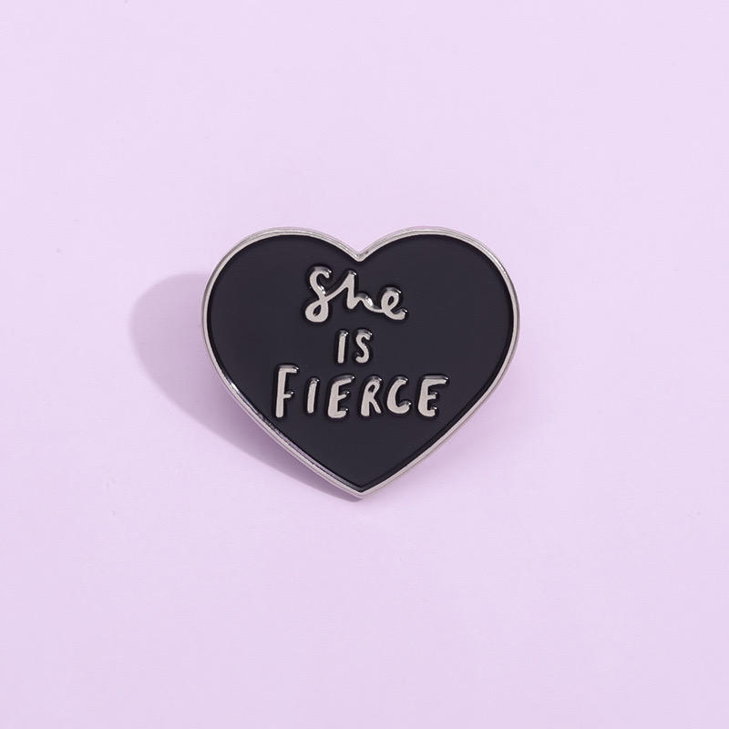 Personnalisé Noir Coeur Émail Pin Punk Gothique Broches Dur Revers Badge Elle Est Féroce Vêtements Sac À Dos Épingles Bijoux Cadeau Amis