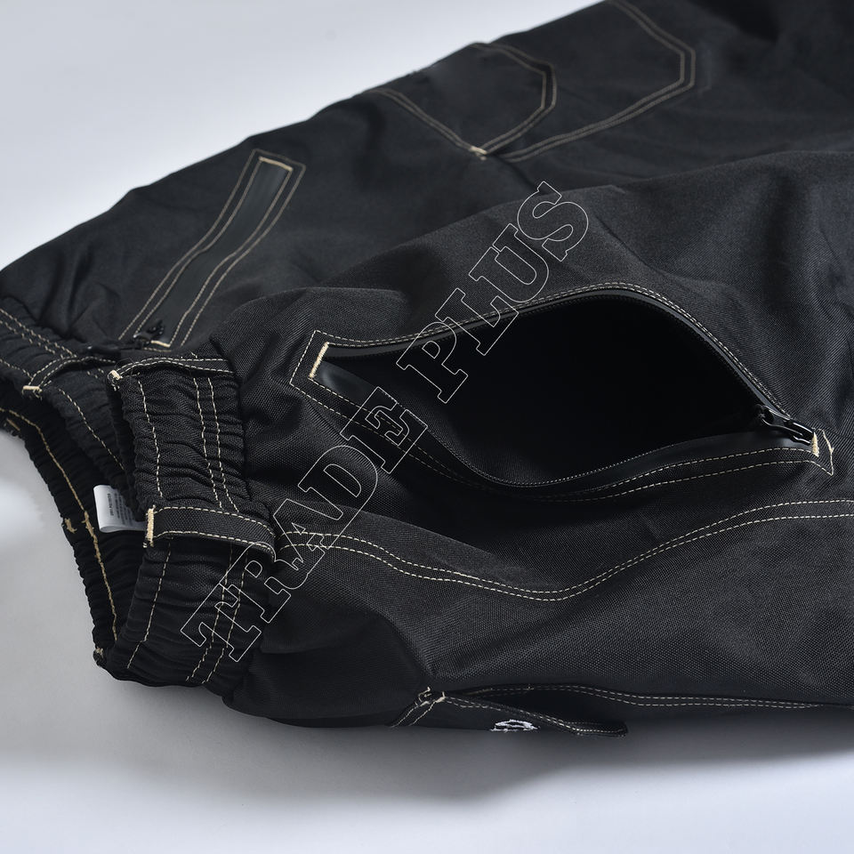 Pantalon cargo noir personnalisé, chauffant, coupe-vent, imperméable, avec fermeture éclair, ourlet cintré et plusieurs poches utilitaires