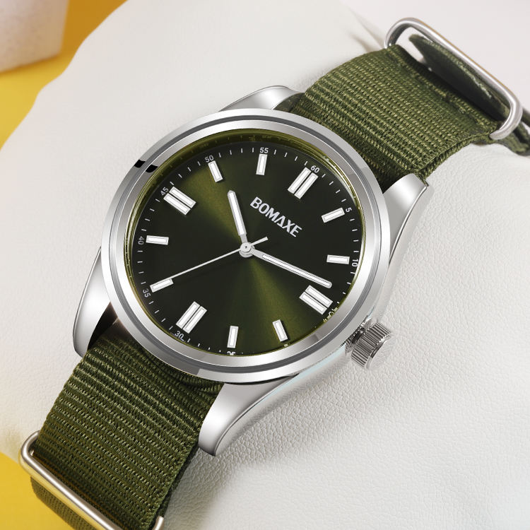 Système de bracelet de montre en nylon noir personnalisé montres à quartz étanches 5 ATM pour hommes boîtier en acier inoxydable verre 20mm à énergie solaire