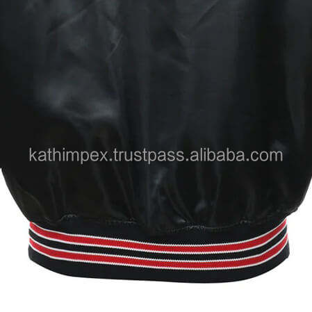 Blouson aviateur noir en satin personnalisé pour hommes en vrac avec boutons pression imprimés avec logo pour vêtements d'équipe et cadeaux d'entreprise