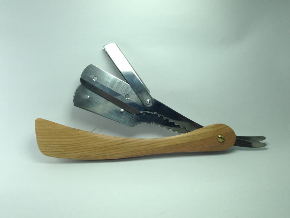 Rasoir professionnel à lame droite en acier inoxydable, rasoir de barbier tranchant, tondeuse manuelle en bois, couteau de rasage pliable