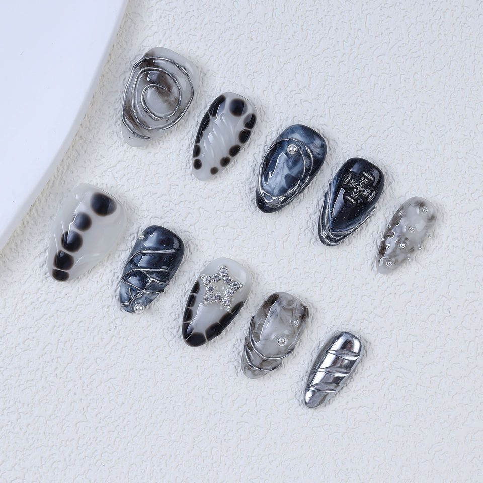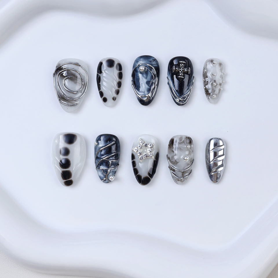 Étoile noire personnalisée 3d fait à la main réutilisable acrylique Y2k presse sur les ongles 10 pièces marque privée faux faux ongles Art en gros avec de la colle