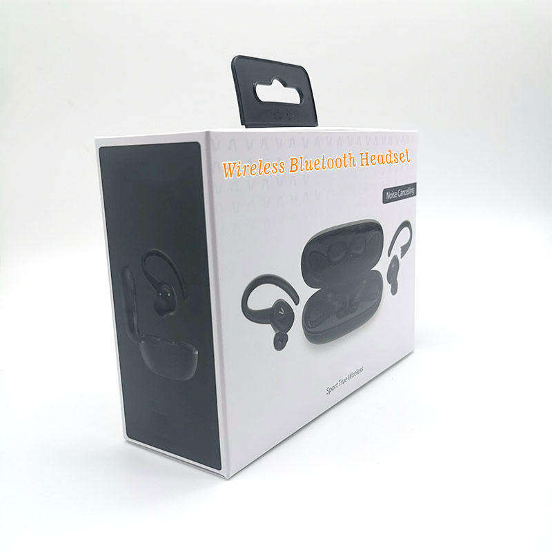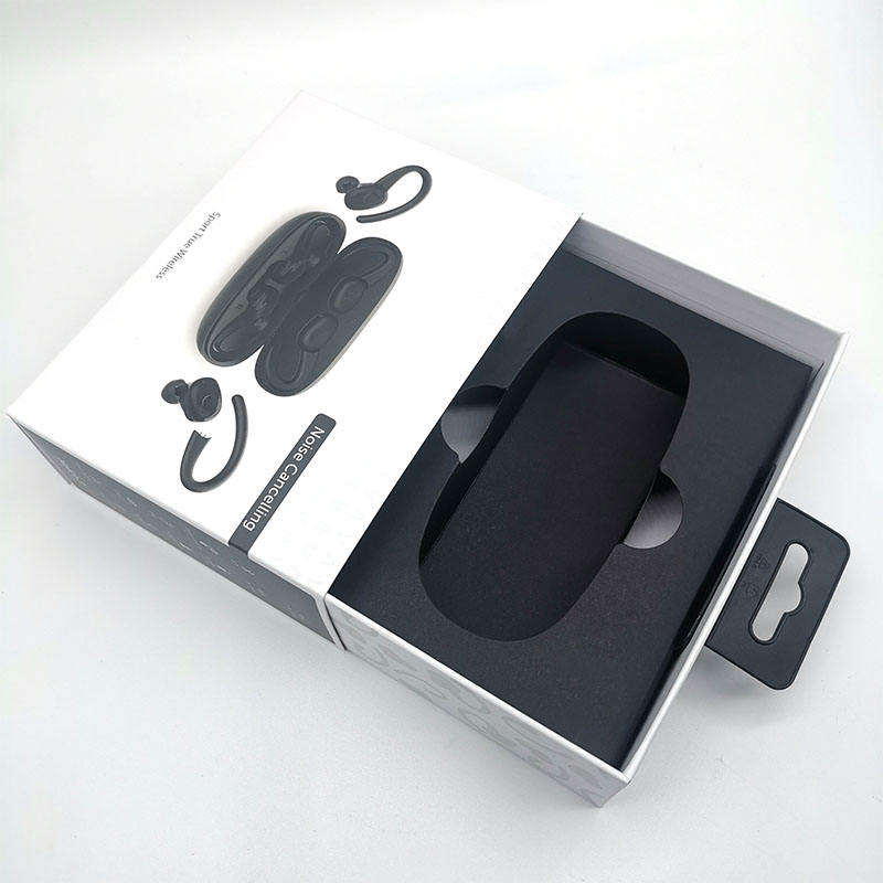 Boîtes en papier noir et blanc personnalisées pour écouteurs sans fil Bluetooth, emballage professionnel pour écouteurs