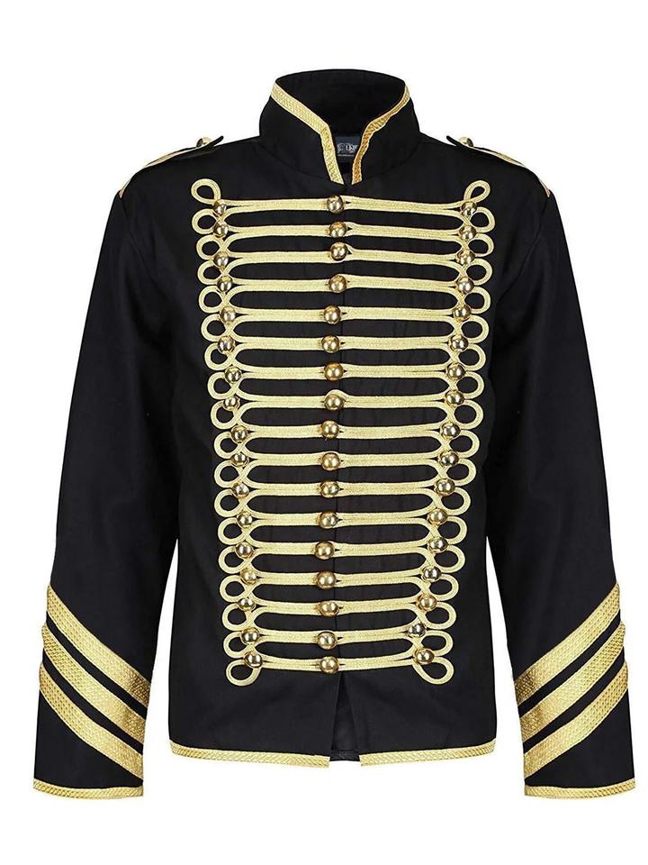Veste Hussarde Noire Personnalisée en Laine avec Broderie Dorée, Uniforme Napoléonien, Tunique de Parade pour Hommes, Style Civil