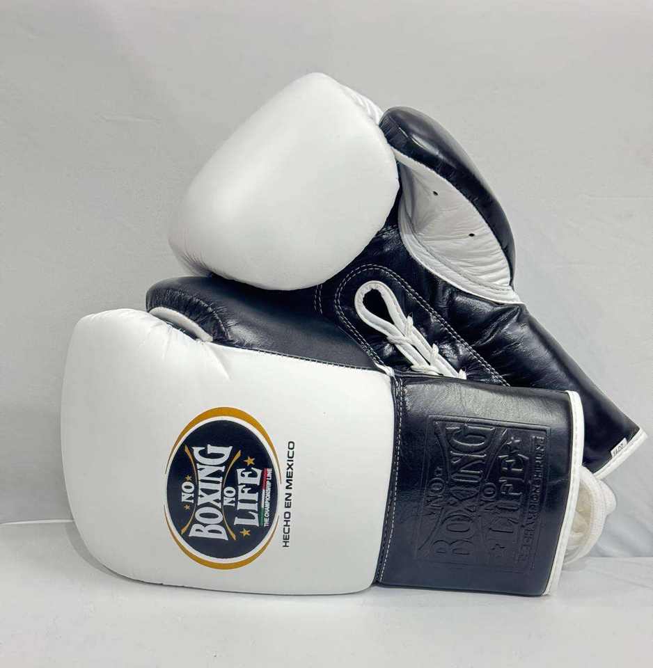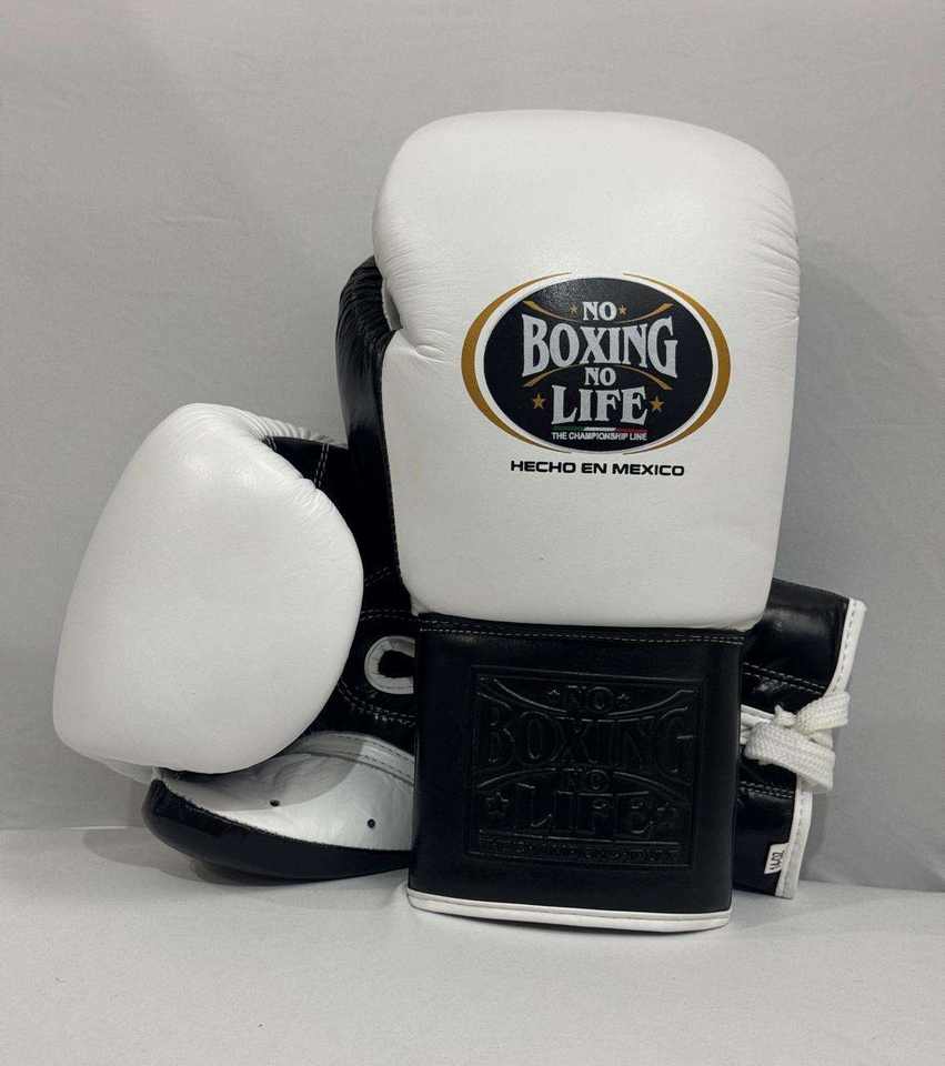 Gants de boxe à lacets personnalisés noirs et blancs sans boxe ni vie Gants de boxe professionnels en cuir mexicain faits à la main Gants d'entraînement et de sparring