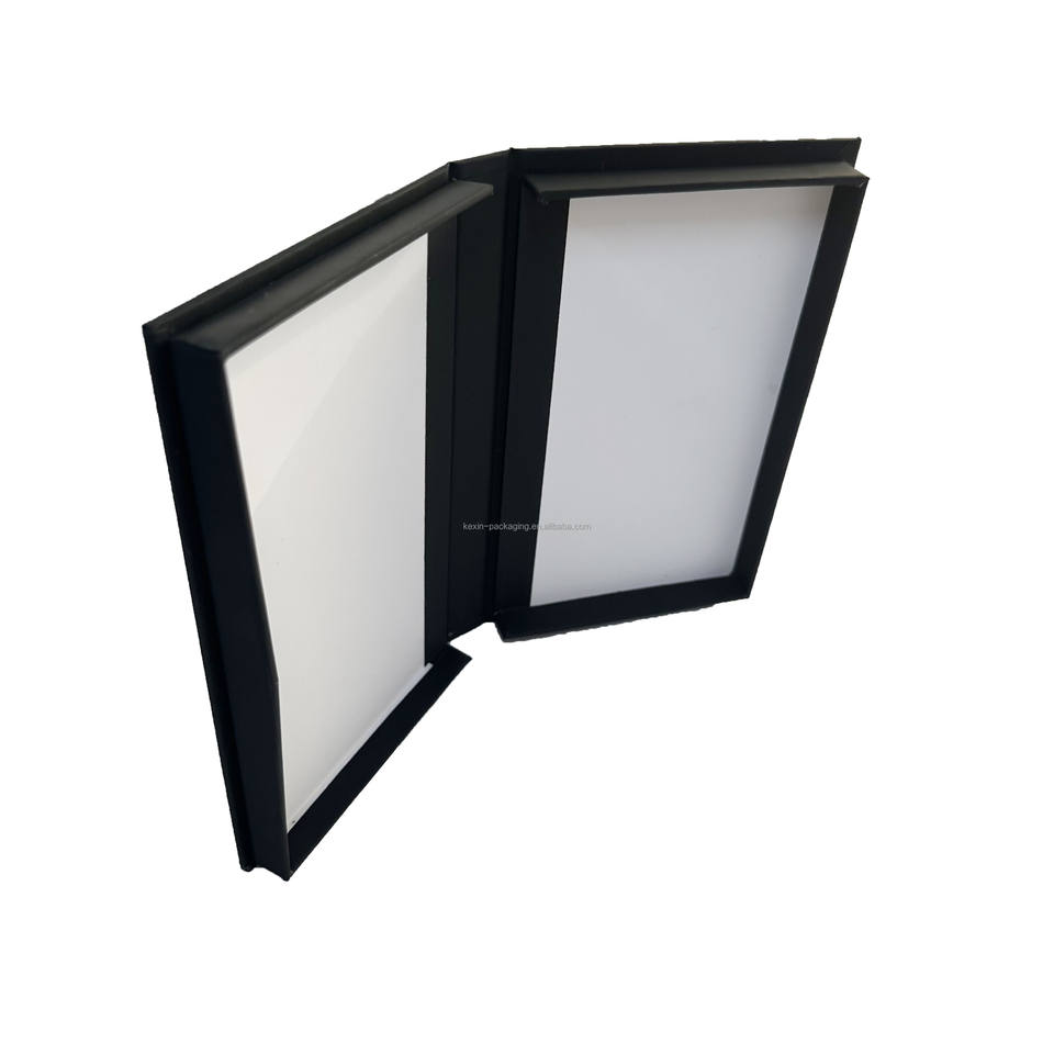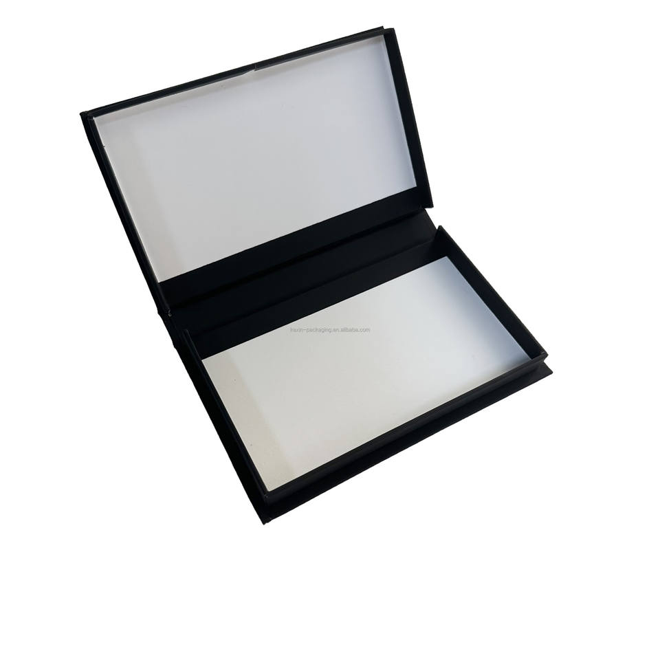 Boîte cadeau en papier noir et blanc personnalisée pour portefeuille pour hommes, ensembles ceinture gaufrée revêtue d'UV avec emballage de cadre photo laminé mat