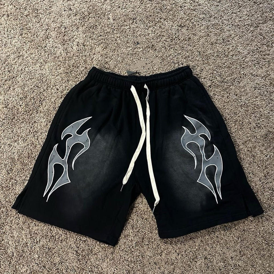 Short de lavage à l'acide vierge personnalisé vieilli Vintage noir hommes français éponge coton Silicone impression lavage à l'acide Shorts