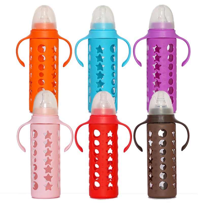 Biberon en verre personnalisé sans BPA pour bébé, standard anti coliques, avec poignée amovible, biberon pour nouveau-né enfant en bas âge