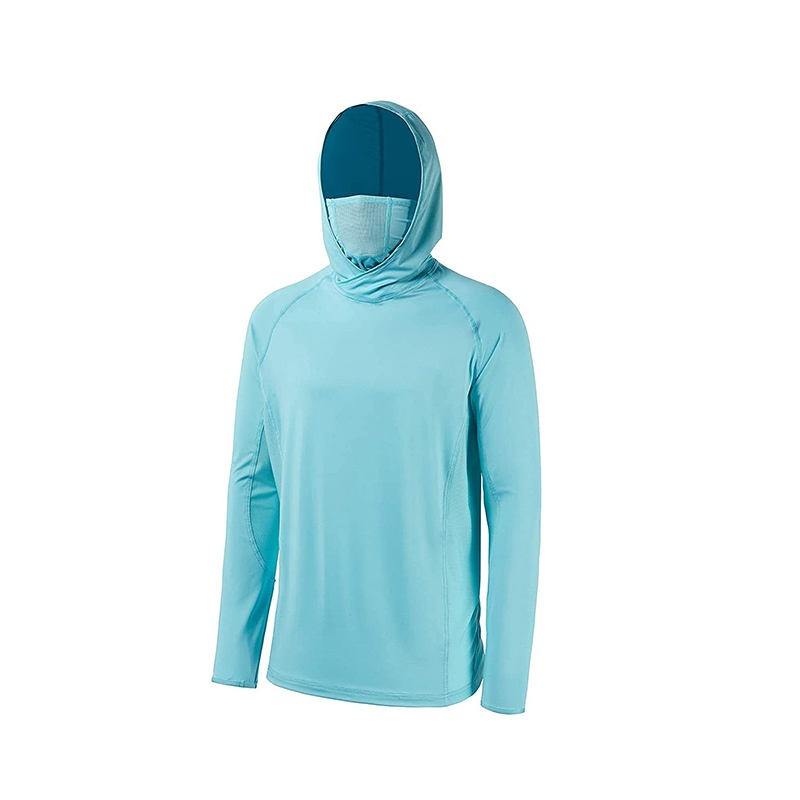 Sweat à capuche de pêche personnalisé, vierge, premium, à manches longues, en polyester, à sublimation, séchage rapide, avec protection UV et cache-cou