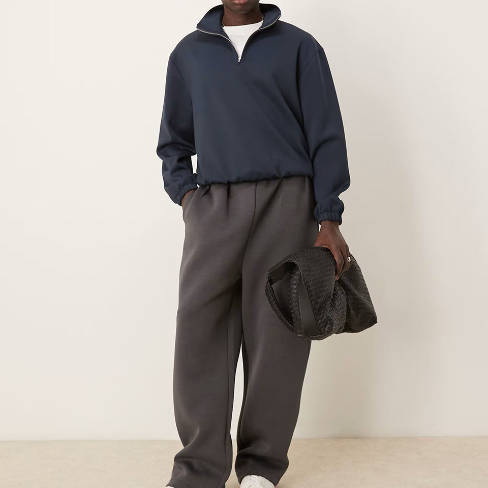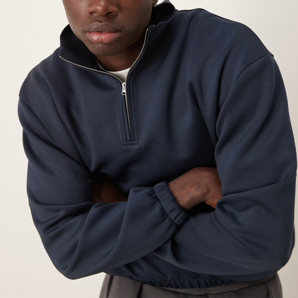 Sweat-shirt unisexe à demi-zip à col rabattu, personnalisé, vierge, de style scuba, de haute qualité, français, coupe courte, style scuba, noir