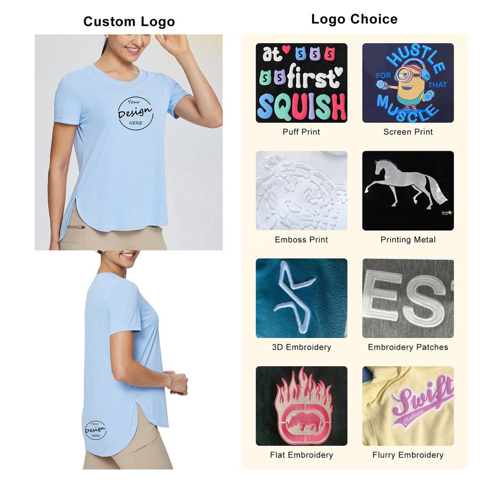 Personnalisé vierge été léger 180 GSM mince respirant Gym Fitness t-shirt couleur unie lâche haute élastique ourlet incurvé t-shirt