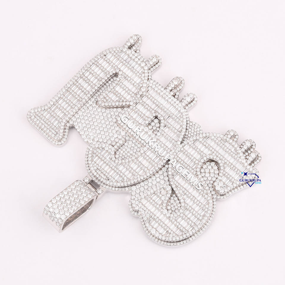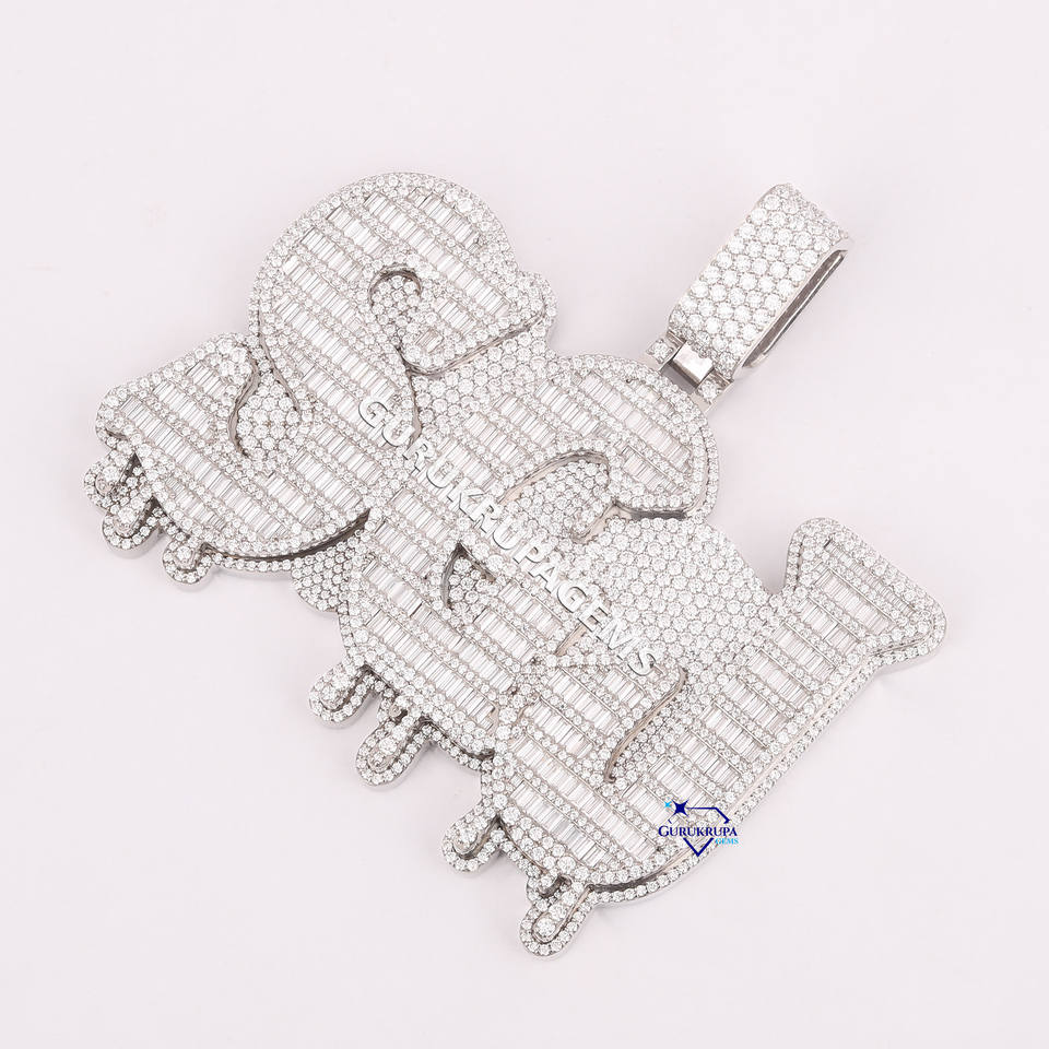 Pendentif personnalisé lettre bling 14KT en or blanc massif SGJ dégoulinant de style hip hop glacé avec diamants cultivés en laboratoire pour bijoux de luxe
