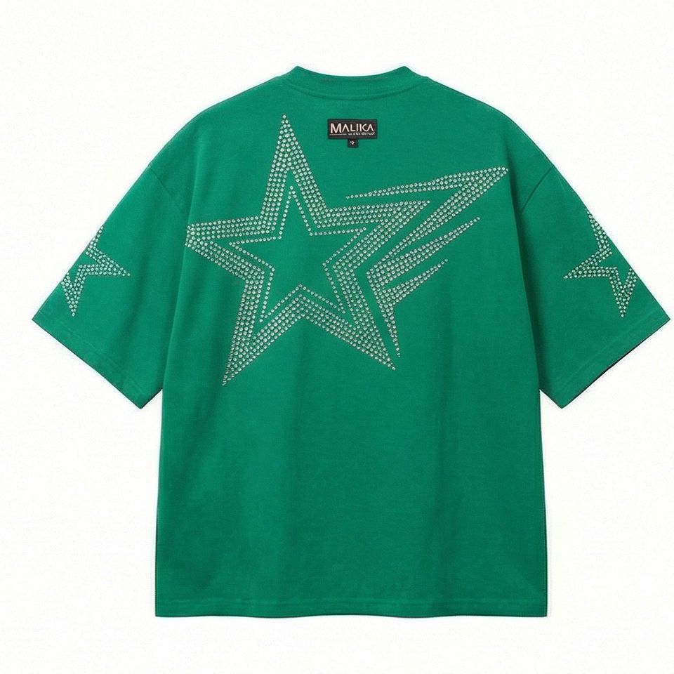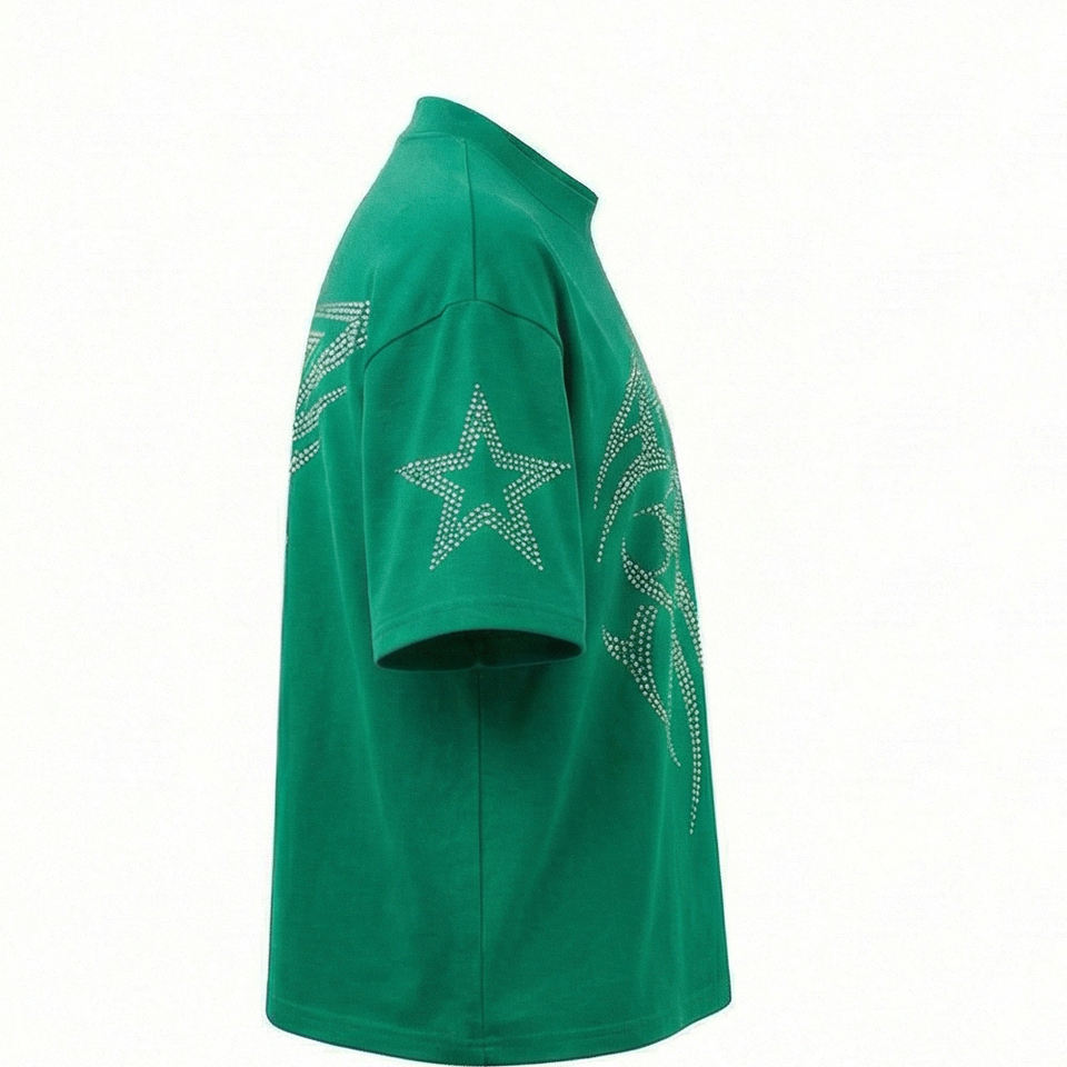 T-shirt personnalisé avec strass pour homme, style urbain argenté, streetwear, tee-shirt tendance orné de cristaux